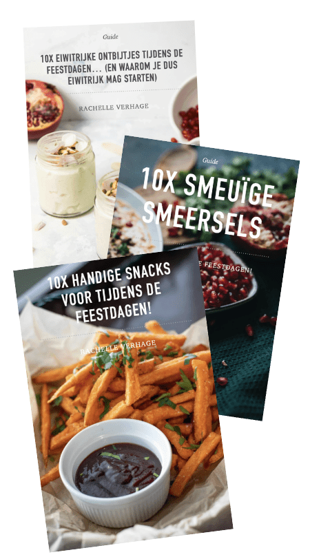 - Drie van mijn zeer waardevolle guides waaronder “10x eiwitrijke ontbijtjes voor tijdens de feestdagen”.